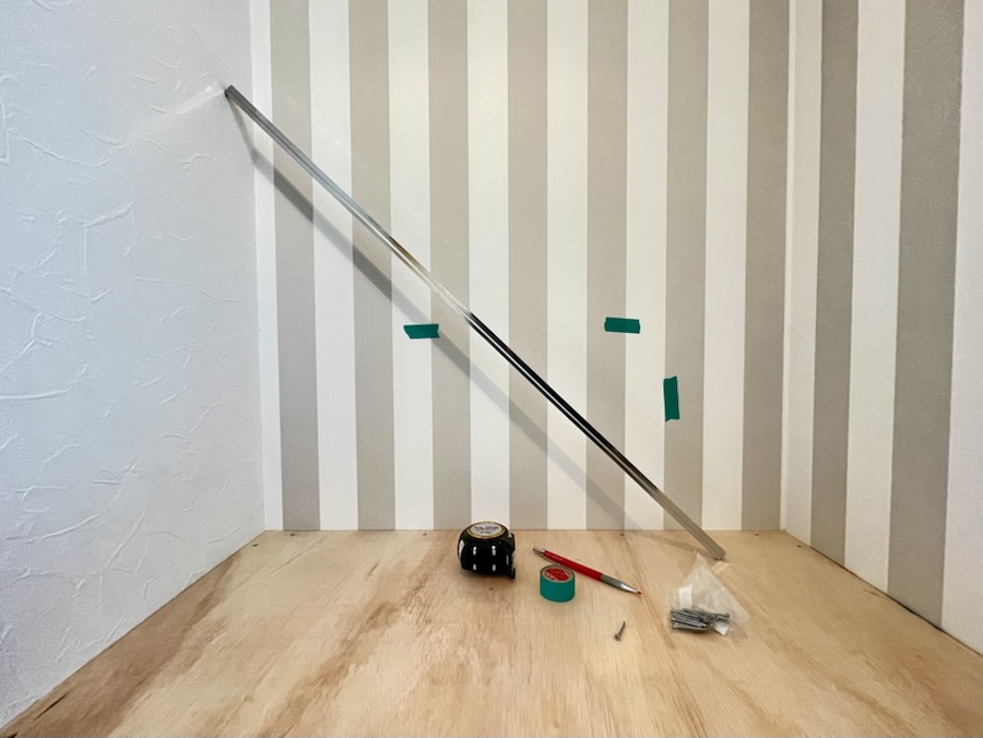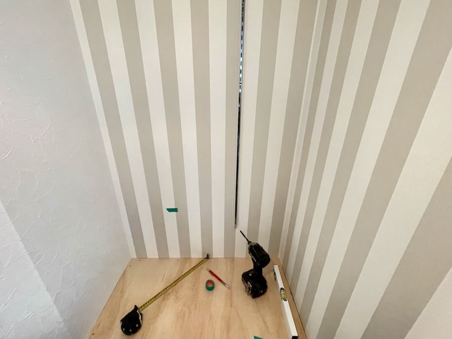 下地の有無が確認できたらマスキングテープに棚柱の位置出しをします。