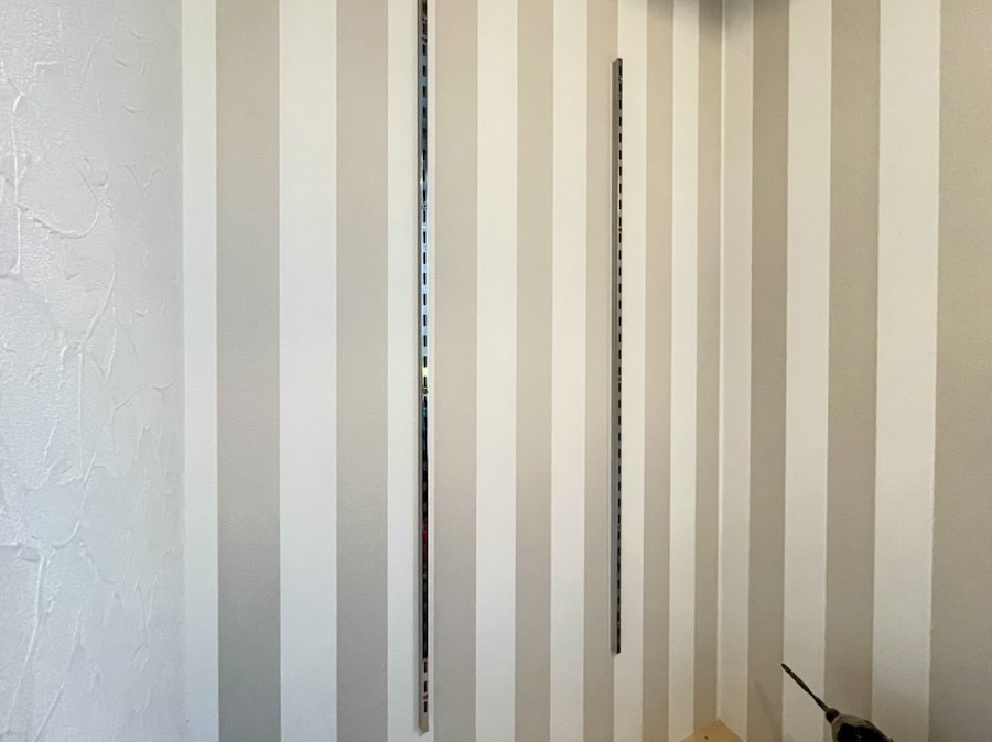 棚柱には棚受けを引っ掛けるための穴が複数空いているので左右同じ高さに取り付けていきましょう。